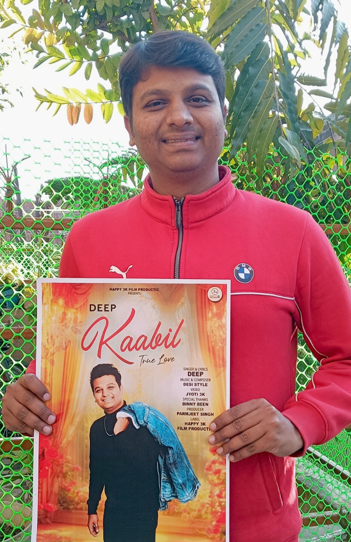 ਫੋਟੋ ਕੈਪਸ਼ਨ:- ਗੀਤ ‘ਕਾਬਿਲ ਟਰੂ ਲਵ’ ਦਾ ਪੋਸਟਰ ਦੇ ਪੋਸਟਰ ਨਾਲ ਗਾਇਕ ਦੀਪ।