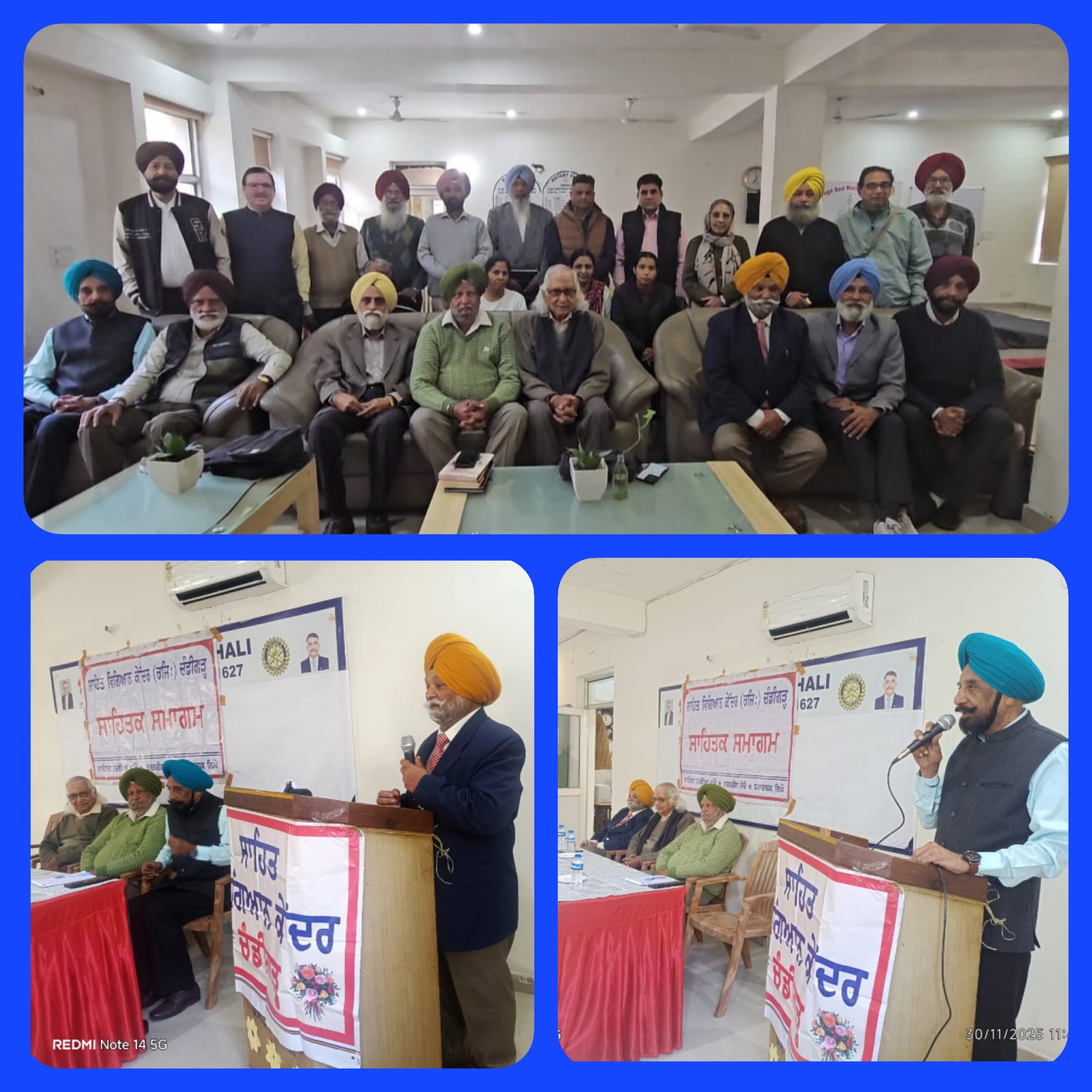 ਸਾਹਿਤ ਵਿਗਿਆਨ ਕੇਂਦਰ ਚੰਡੀਗੜ੍ਹ ਦੀ ਮਾਸਿਕ ਇਕੱਤਰਤਾ ਰੋਟਰੀ ਭਵਨ, ਸੈਕਟਰ 70, ਮੋਹਾਲੀ ਵਿਖੇ ਹੋਈ, ਜਿਸ ਦੇ ਪ੍ਰਧਾਨਗੀ ਮੰਡਲ ਵਿਚ ਡਾ. ਸ਼ਿੰਦਰਪਾਲ ਸਿੰਘ, ਡਾ. ਮਨਜੀਤ ਸਿੰਘ ਬੱਲ, ਪ੍ਰਸਿੱਧ ਲੇਖਕ ਬਾਬੂ ਰਾਮ ਦੀਵਾਨਾ ਅਤੇ ਕੇਂਦਰ ਦੇ ਪ੍ਰਧਾਨ ਗੁਰਦਰਸ਼ਨ ਸਿੰਘ ਮਾਵੀ ਸ਼ਾਮਲ ਸਨ। ਗੁਰਦਰਸ਼ਨ ਸਿੰਘ ਮਾਵੀ ਨੇ ਸਭ ਨੂੰ ਜੀ ਆਇਆਂ ਆਖਿਆ ਅਤੇ ਗੁਰੂ ਤੇਗ ਬਹਾਦਰ ਜੀ ਦੀ ਅਦੁੱਤੀ ਸ਼ਹੀਦੀ ਬਾਰੇ ਆਪਣੇ ਵਿਚਾਰ ਸਾਂਝੇ ਕੀਤੇ। ਬਲਵਿੰਦਰ ਸਿੰਘ ਢਿੱਲੋਂ ਨੇ ਗੁਰੂ ਜੀ ਬਾਰੇ ਗੁਰਦੇਵ ਮਾਨ ਦਾ ਲਿਖਿਆ ਗੀਤ ਪੇਸ਼ ਕੀਤਾ। ਤੂੰਬੀ ਦੀ ਟੁਣਕਾਰ ਨਾਲ ਰਤਨ ਬਾਬਕਵਾਲਾ ਨੇ ਭਾਈ ਜੈਤਾ ਜੀ ਵਲੋਂ ਗੁਰੂ ਜੀ ਦਾ ਸੀਸ ਲਿਆਉਣ ਦੀ ਗਾਥਾ ਨੂੰ ਸੁਣਾਇਆ।