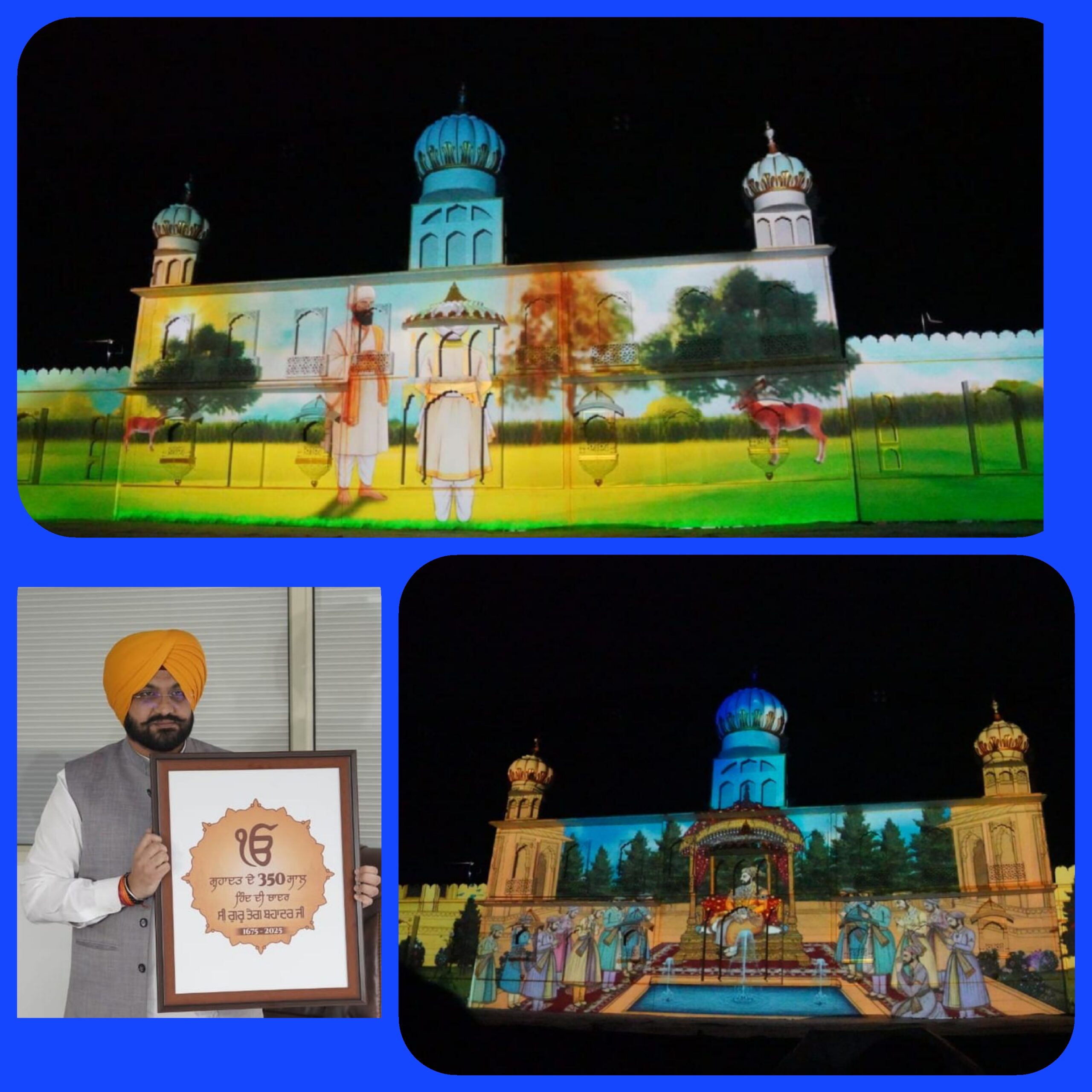 ਪੰਜਾਬ ਦੇ ਸੈਰ ਸਪਾਟਾ ਅਤੇ ਸੱਭਿਆਚਾਰਕ ਮਾਮਲਿਆਂ ਬਾਰੇ ਮੰਤਰੀ ਤਰੁਨਪ੍ਰੀਤ ਸਿੰਘ ਸੌਂਦ ਨੇ ਦੱਸਿਆ ਹੈ ਕਿ ਮੁੱਖ ਮੰਤਰੀ ਭਗਵੰਤ ਸਿੰਘ ਮਾਨ ਦੀ ਅਗਵਾਈ ਵਾਲੀ ਪੰਜਾਬ ਸਰਕਾਰ ਵੱਲੋਂ ਨੌਵੇਂ ਪਾਤਸ਼ਾਹ ਸ੍ਰੀ ਗੁਰੂ ਤੇਗ ਬਹਾਦਰ ਜੀ ਦੇ 350ਵੇਂ ਸ਼ਹੀਦੀ ਦਿਹਾੜੇ ਨੂੰ ਸਮਰਪਿਤ ਵੱਖ-ਵੱਖ ਸਮਾਗਮਾਂ ਦੇ ਹਿੱਸੇ ਵਜੋਂ ਦੂਜੇ ਗੇੜ ਦੇ ਲਾਈਟ ਐਂਡ ਸਾਊਂਡ ਸ਼ੋਅ 8 ਨਵੰਬਰ ਨੂੰ ਗੁਰਦਾਸਪੁਰ, ਫਰੀਦਕੋਟ, ਫਾਜ਼ਿਲਕਾ ਅਤੇ ਹੁਸ਼ਿਆਰਪੁਰ ਜ਼ਿਲ੍ਹਿਆਂ ਵਿਖੇ ਕਰਵਾਏ ਜਾ ਰਹੇ ਹਨ। ਇਨ੍ਹਾਂ ਸ਼ੋਆਂ ਵਿੱਚ ਵੱਖ-ਵੱਖ ਕੈਬਨਿਟ ਮੰਤਰੀ, ਪੰਜਾਬ ਵਿਧਾਨ ਸਭਾ ਦੇ ਸਪੀਕਰ ਅਤੇ ਡਿਪਟੀ ਸਪੀਕਰ ਵੱਲੋਂ ਸੰਗਤ ਸਮੇਤ ਸ਼ਮੂਲੀਅਤ ਕੀਤੀ ਜਾਵੇਗੀ। ਸੌਂਦ ਨੇ ਦੱਸਿਆ ਕਿ ਗੁਰਦਾਸਪੁਰ ਜ਼ਿਲ੍ਹੇ ਦਾ ਲਾਈਟ ਐਂਡ ਸਾਊਂਡ ਸ਼ੋਅ ਆਈ.ਟੀ.ਆਈ ਬਟਾਲਾ ਵਿਖੇ ਹੋਵੇਗਾ। ਇਸ ਸਮਾਗਮ ਵਿੱਚ ਖੁਰਾਕ ਤੇ ਸਿਵਲ ਸਪਲਾਈ ਮੰਤਰੀ ਲਾਲ ਚੰਦ ਕਟਾਰੂਚੱਕ ਵੱਲੋਂ ਹਾਜ਼ਰੀ ਭਰੀ ਜਾਵੇਗੀ। ਉੱਥੇ ਹੀ ਫਰੀਦਕੋਟ ਦੇ ਨਹਿਰੂ ਸਟੇਡੀਅਮ ਵਿਖੇ ਕਰਵਾਏ ਜਾ ਰਹੇ ਸ਼ੋਅ ਵਿੱਚ ਪੰਜਾਬ ਵਿਧਾਨ ਸਭਾ ਦੇ ਸਪੀਕਰ ਕੁਲਤਾਰ ਸਿੰਘ ਸੰਧਵਾਂ ਸ਼ਾਮਲ ਹੋਣਗੇ।