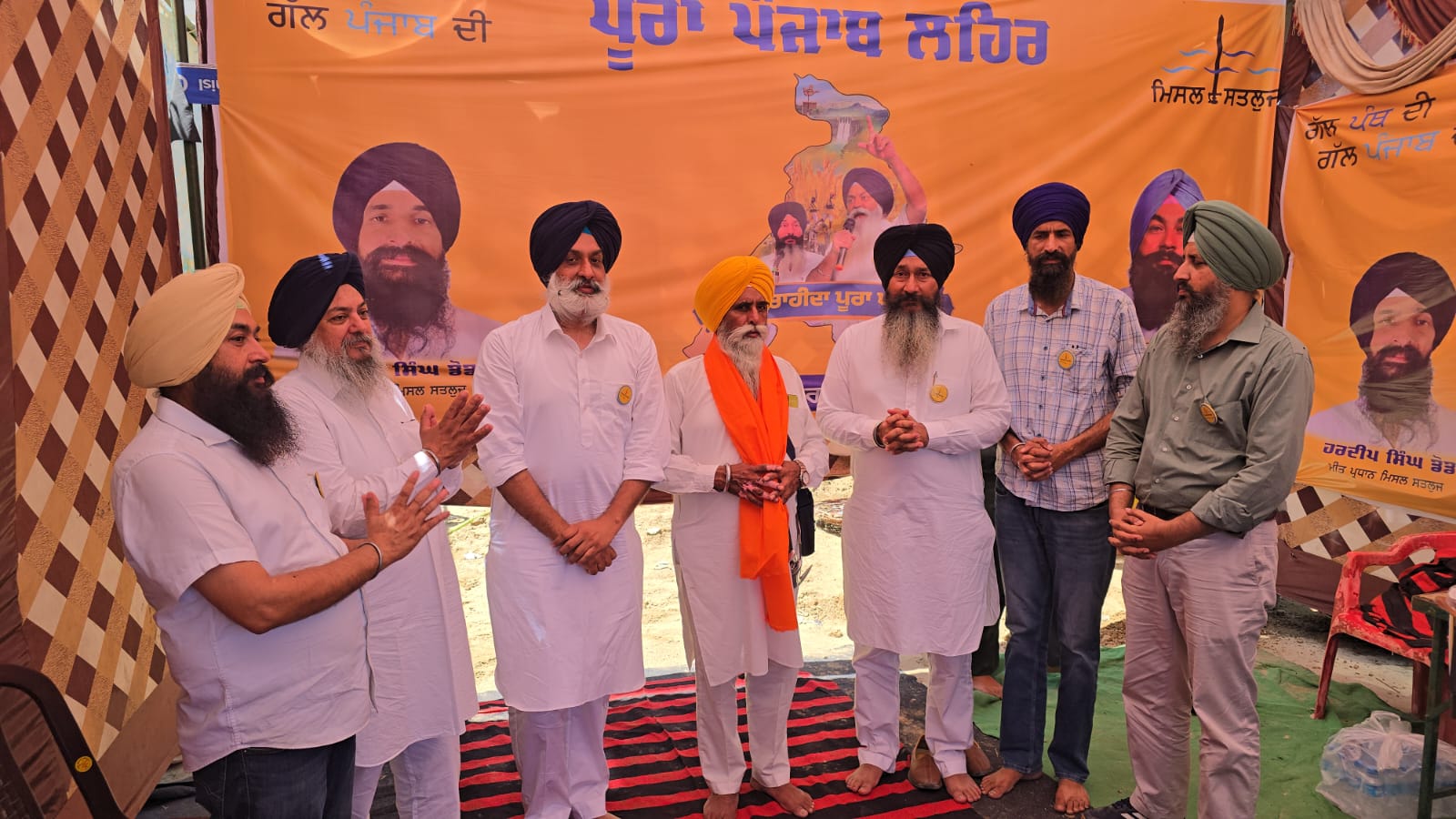 ਪੰਜਾਬ ਦੇ ਹਿੱਤਾਂ ‘ਤੇ ਕੇਂਦਰਿਤ ਮਜ਼ਬੂਤ ਅਤੇ ਬਦਲਵੀਂ ਰਾਜਨੀਤਿਕ ਧਾਰਾ ਖੜ੍ਹੀ ਕਰਨ ਲਈ ਵਚਨਬੱਧ ਜਥੇਬੰਦੀ ਮਿਸਲ ਸਤਲੁਜ ਵੱਲੋਂ ਪ੍ਰਧਾਨ ਸਰਦਾਰ ਅਜੇਪਾਲ ਸਿੰਘ ਬਰਾੜ ਦੀ ਅਗਵਾਈ ਹੇਠ ਚਲਾਈ ਜਾ ਰਹੀ “ਪੂਰਾ ਪੰਜਾਬ ਲਹਿਰ” ਮੁਹਿੰਮ ਤਹਿਤ ਸਾਰੇ ਪੰਜਾਬ ਵਿੱਚ ਪ੍ਰਭਾਵਸ਼ਾਲੀ ਤਰੀਕੇ ਨਾਲ ਜਾਗਰੂਕਤਾ ਮੁਹਿੰਮ ਚਲਾਈ ਜਾ ਰਹੀ ਹੈ। ਇਸ ਲੜੀ ਤਹਿਤ ਵਿਸਾਖੀ ਦੇ ਪਵਿੱਤਰ ਦਿਹਾੜਿਆਂ ਦੌਰਾਨ 11 ਤੋਂ 14 ਅਪ੍ਰੈਲ ਤੱਕ ਤਖਤ ਸ਼੍ਰੀ ਦਮਦਮਾ ਸਹਿਬ ਵਿਖੇ ਇਕ ਵਿਸ਼ੇਸ਼ ਚੇਤਨਾ ਕੈਂਪ ਲਗਾਇਆ ਗਿਆ, ਜਿਸ ਦਾ ਸੰਗਤਾਂ ਵੱਲੋਂ ਭਰਪੂਰ ਸਮਰਥਨ ਕੀਤਾ ਗਿਆ। ਇਸ ਚੇਤਨਾ ਕੈਂਪ ਦੌਰਾਨ “ਪੂਰਾ ਪੰਜਾਬ ਲਹਿਰ” ਤਹਿਤ ਦਸਤਖ਼ਤ ਪਟੀਸ਼ਨ ਜਾਰੀ ਕਰਕੇ ਸੰਗਤ ਨੂੰ ਪੰਜਾਬ ਦੀਆਂ ਮੁੱਖ ਬੁਨਿਆਦੀ ਮੰਗਾਂ ਬਾਰੇ ਜਾਗਰੂਕ ਕੀਤਾ ਗਿਆ ਅਤੇ ਇਹ ਵੀ ਉਜਾਗਰ ਕੀਤਾ ਗਿਆ ਕਿ ਕਿਵੇਂ ਵੱਖ-ਵੱਖ ਰਾਜਨੀਤਿਕ ਪਾਰਟੀਆਂ ਇਨ੍ਹਾਂ ਬੁਨਿਆਦੀ ਮਸਲਿਆਂ ਤੋਂ ਲੋਕਾਂ ਦਾ ਧਿਆਨ ਭਟਕਾ ਰਹੀਆਂ ਹਨ। ਇਸ ਮੁਹਿੰਮ ਨੂੰ ਸੰਗਤਾਂ ਵੱਲੋਂ ਬੇਹੱਦ ਉਤਸ਼ਾਹਪੂਰਵਕ ਹੁੰਗਾਰਾ ਮਿਲਿਆ ਅਤੇ ਚਾਰ ਦਿਨਾਂ ਦੌਰਾਨ ਹਜ਼ਾਰਾਂ ਦੀ ਗਿਣਤੀ ਵਿੱਚ ਲੋਕਾਂ ਨੇ ਮਿਸਲ ਸਤਲੁਜ ਦੇ ਕਾਊਂਟਰ ‘ਤੇ ਪਹੁੰਚ ਕੇ ਪਟੀਸ਼ਨ ‘ਤੇ ਦਸਤਖ਼ਤ ਕਰਕੇ ਸਮਰਥਨ ਕੀਤਾ। ਇਸ ਦੌਰਾਨ ਮੁਹਿੰਮ ਨੂੰ ਉਸ ਸਮੇਂ ਵਿਸ਼ੇਸ਼ ਹੁਲਾਰਾ ਮਿਲਿਆ ਜਦੋਂ ਵਾਰਸ ਪੰਜਾਬ ਜਥੇਬੰਦੀ ਦੇ ਸੀਨੀਅਰ ਆਗੂ ਬਾਬਾ ਸੁਖਦੇਵ ਸਿੰਘ ਮਹੀਆਂਵਾਲੇ ਆਪਣੇ ਸਾਥੀਆਂ ਸਮੇਤ ਮਿਸਲ ਸਤਲੁਜ ਵਿੱਚ ਸ਼ਾਮਲ ਹੋਏ। ਇਸ ਮੌਕੇ ਮਿਸਲ ਸਤਲੁਜ ਦੇ ਜਨਰਲ ਸਕੱਤਰ ਸਰਦਾਰ ਦਵਿੰਦਰ ਸਿੰਘ ਸੇਖੋਅ , ਸਰਦਾਰ ਹਰਦੀਪ ਸਿੰਘ ਡੋਰ, ਸਰਦਾਰ ਗੁਰਦੇਵ ਸਿੰਘ ਚਾਹਲ, ਸਰਦਾਰ ਗੁਰਮੰਤ ਸਿੰਘ ਗਿੱਲ, ਸਰਦਾਰ ਅੰਮ੍ਰਿਤਪਾਲ ਸਿੰਘ, ਐਡਵੋਕੇਟ ਰਮਨਦੀਪ ਸਿੰਘ ਬਠਿੰਡਾ ਆਦਿ ਆਗੂਆਂ ਵੱਲੋਂ ਬਾਬਾ ਸੁਖਦੇਵ ਸਿੰਘ ਜੀ ਨੂੰ ਸਿਰੋਪਾ ਭੇਟ ਕਰਕੇ ਸਨਮਾਨਿਤ ਕੀਤਾ ਗਿਆ।