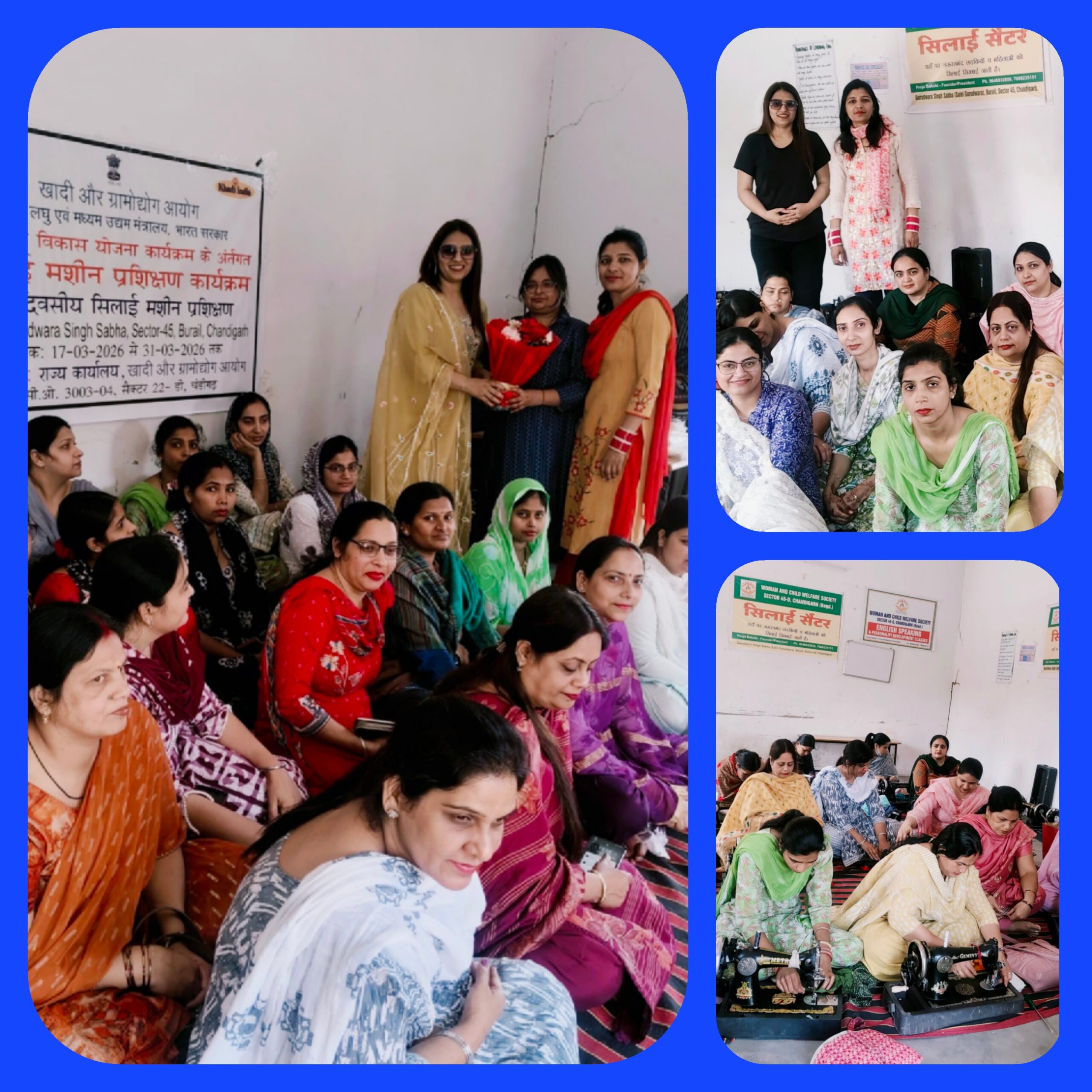 ਵੂਮੈਨ ਐਂਡ ਚਾਈਲਡ ਵੈਲਫੇਅਰ ਸੋਸਾਇਟੀ, ਸੈਕਟਰ 45D, ਚੰਡੀਗੜ੍ਹ ਵੱਲੋਂ 15 ਦਿਵਸੀ ਸਿਲਾਈ ਮਸ਼ੀਨ ਸਿਖਲਾਈ ਪ੍ਰੋਗਰਾਮ ਦਾ ਸਫਲ ਆਯੋਜਨ ਕੀਤਾ ਗਿਆ। ਇਹ ਪ੍ਰੋਗਰਾਮ ਖਾਦੀ ਅਤੇ ਗ੍ਰਾਮ ਉਦਯੋਗ ਆਯੋਗ, ਸੂਖਮ, ਲਘੂ ਅਤੇ ਮੱਧਮ ਉਦਯੋਗ ਮੰਤਰਾਲਾ, ਭਾਰਤ ਸਰਕਾਰ ਵੱਲੋਂ ਚਲਾਈ ਜਾ ਰਹੀ ਗ੍ਰਾਮੀਣ ਉਦਯੋਗ ਵਿਕਾਸ ਯੋਜਨਾ ਦੇ ਤਹਿਤ ਕਰਵਾਇਆ ਗਿਆ। ਇਹ ਸਿਖਲਾਈ ਪ੍ਰੋਗਰਾਮ 17 ਤੋਂ 31 ਮਾਰਚ 2026 ਤੱਕ ਗੁਰਦੁਆਰਾ ਸਿੰਘ ਸਭਾ, ਸੈਕਟਰ 45, ਬੁੜੈਲ, ਚੰਡੀਗੜ੍ਹ ਵਿਖੇ ਆਯੋਜਿਤ ਕੀਤਾ ਗਿਆ, ਜਿਸ ਦਾ ਸੰਚਾਲਨ ਰਾਜ ਦਫ਼ਤਰ, ਖਾਦੀ ਅਤੇ ਗ੍ਰਾਮ ਉਦਯੋਗ ਆਯੋਗ, ਐਮ.ਐਸ.ਐਮ.ਈ. ਭਵਨ, ਸੈਕਟਰ 22-ਸੀ, ਚੰਡੀਗੜ੍ਹ ਵੱਲੋਂ ਕੀਤਾ ਗਿਆ। ਇਸ ਪ੍ਰੋਗਰਾਮ ਦਾ ਮੁੱਖ ਉਦੇਸ਼ ਇਲਾਕੇ ਦੀਆਂ ਲੋੜਵੰਦ ਮਹਿਲਾਵਾਂ ਅਤੇ ਯੁਵਤੀਆਂ ਨੂੰ ਆਤਮਨਿਰਭਰ ਬਣਾਉਣਾ ਅਤੇ ਉਨ੍ਹਾਂ ਲਈ ਰੋਜ਼ਗਾਰ ਦੇ ਮੌਕੇ ਉਪਲਬਧ ਕਰਵਾਉਣਾ ਸੀ। ਇਸ ਸਿਖਲਾਈ ਵਿੱਚ ਚੰਡੀਗੜ੍ਹ ਅਤੇ ਪੰਜਾਬ ਨਾਲ ਸੰਬੰਧਤ ਲਗਭਗ 20 ਮਹਿਲਾਵਾਂ ਅਤੇ ਯੁਵਤੀਆਂ ਨੇ ਭਾਗ ਲਿਆ।