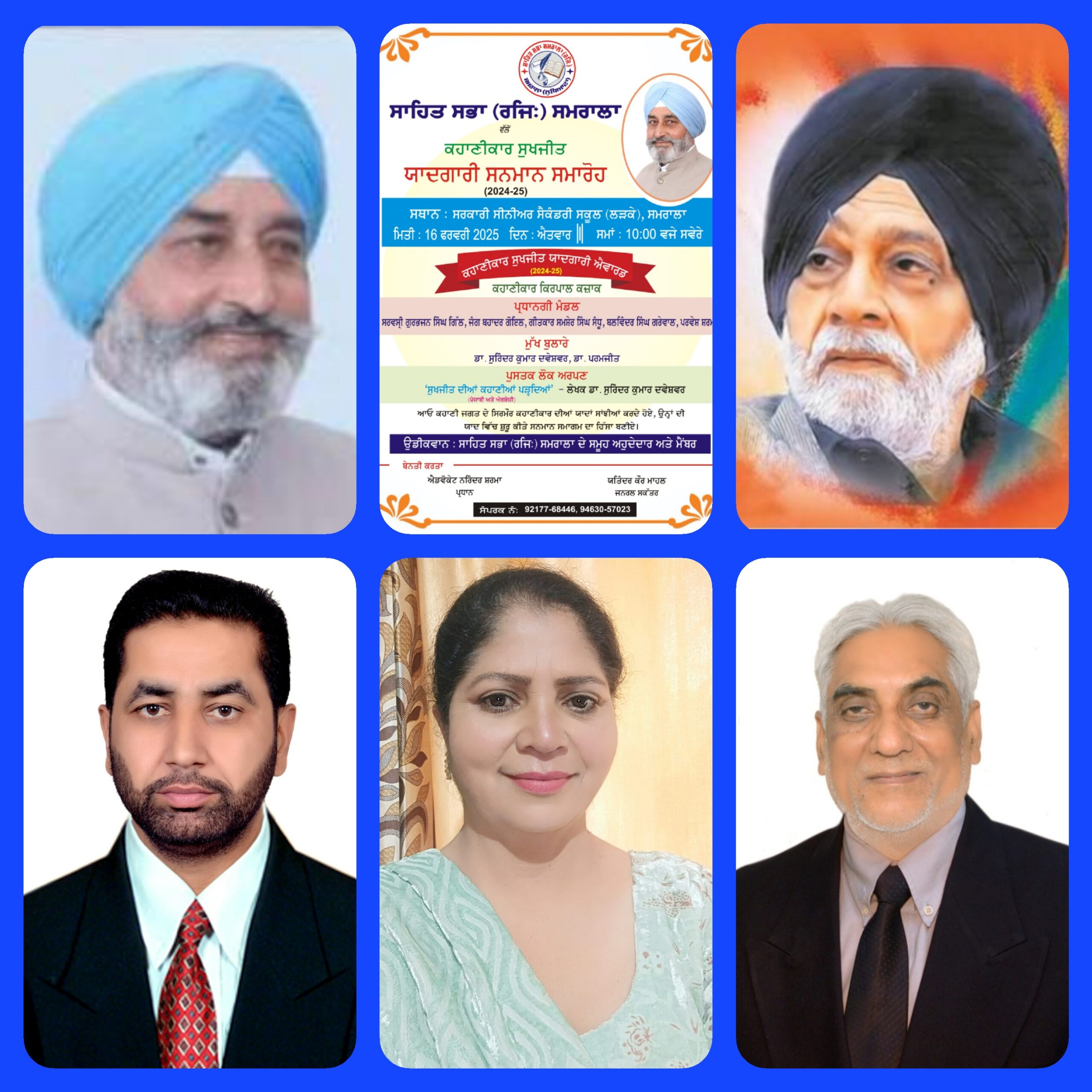 ਸਾਹਿਤ ਸਭਾ (ਰਜਿ.) ਸਮਰਾਲ਼ਾ ਵੱਲੋਂ ‘ਪਲੇਠਾ ਕਹਾਣੀਕਾਰ ਸੁਖਜੀਤ ਯਾਦਗਾਰੀ ਸਨਮਾਨ ਸਮਾਰੋਹ (2024-25)” ਮਿਤੀ 16 ਫਰਵਰੀ, 2025 ਨੂੰ ਸਵੇਰੇ 10.00 ਵਜੇ, ਸਰਕਾਰੀ ਸੀਨੀਅਰ ਸੈਕੰਡਰੀ ਸਕੂਲ (ਲੜਕੇ), ਸਮਰਾਲ਼ਾ ਵਿਖੇ ਕਰਵਾਇਆ ਜਾ ਰਿਹਾ ਹੈ। ਸਭਾ ਦੇ ਪ੍ਰਧਾਨ ਨਰਿੰਦਰ ਸ਼ਰਮਾ ਅਤੇ ਜਨਰਲ ਸਕੱਤਰ ਯਤਿੰਦਰ ਕੌਰ ਮਾਹਲ ਨੇ ਦੱਸਿਆ ਕਿ ਇਸ ਸਮਾਰੋਹ ਮੌਕੇ ਇਹ ਪ੍ਰਭਾਵਸ਼ਾਲੀ ਐਵਾਰਡ ਸਮਰੱਥ ਕਹਾਣੀਕਾਰ ਕਿਰਪਾਲ ਕਜ਼ਾਕ ਨੂੰ ਪ੍ਰਦਾਨ ਕੀਤਾ ਜਾਵੇਗਾ। ਜ਼ਿਕਰਯੋਗ ਹੈ ਕਿ ਕਹਾਣੀਕਾਰ ਸੁਖਜੀਤ ਨੇ ਇਸ ਸਭਾ ਦੇ ਚੇਅਰਮੈਨ ਹੁੰਦਿਆਂ ਅਗਲੀ ਪੀੜ੍ਹੀ ਦੇ ਨਵੇਂ ਕਹਾਣੀਕਾਰਾਂ ਨੂੰ ਉਂਗਲ਼ ਫੜ ਅੰਤਲੇ ਸਾਹ ਤੱਕ ਕਹਾਣੀ ਦੇ ਖੇਤਰ ਵਿੱਚ ਅਗਾਂਹ ਤੋਰਨ ਦਾ ਜ਼ਿੰਮਾ ਸੰਭਾਲ਼ੀ ਰੱਖਿਆ ਹੈ।
