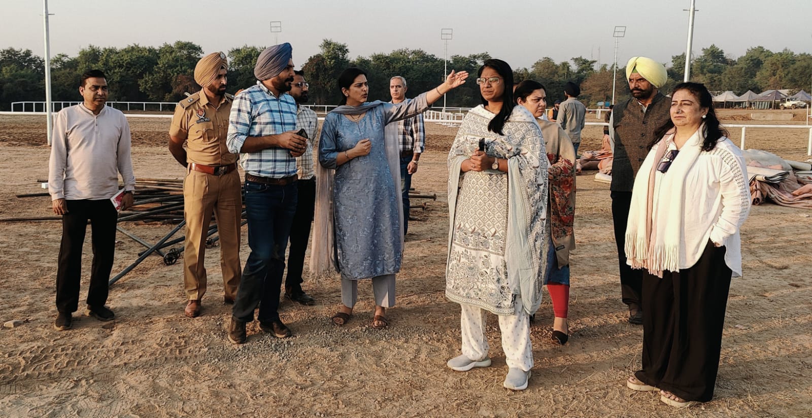 ਏ ਡੀ ਸੀ (ਪੇਂਡੂ ਵਿਕਾਸ) ਸੋਨਮ ਚੌਧਰੀ, ਐਸ ਡੀ ਐਮ ਖਰੜ ਦਿਵਿਆ ਪੀ., ਅਤੇ ਐਸ ਪੀ ਮੁੱਲਾਂਪੁਰ ਧਰਮਵੀਰ ਸਿੰਘ ਬੁੱਧਵਾਰ ਸ਼ਾਮ ਨੂੰ ਪਲਨਪੁਰ (ਮੋਹਾਲੀ) ਦੇ ਦ ਮੈਡੋ ਵਿਖੇ ਪੰਜਾਬ ਘੋੜਸਵਾਰੀ ਉਤਸਵ ਦੇ ਦੂਜੇ ਐਡੀਸ਼ਨ ਦੀਆਂ ਚੱਲ ਰਹੀਆਂ ਤਿਆਰੀਆਂ ਦਾ ਜਾਇਜ਼ਾ ਲੈਂਦੇ ਹੋਏ।