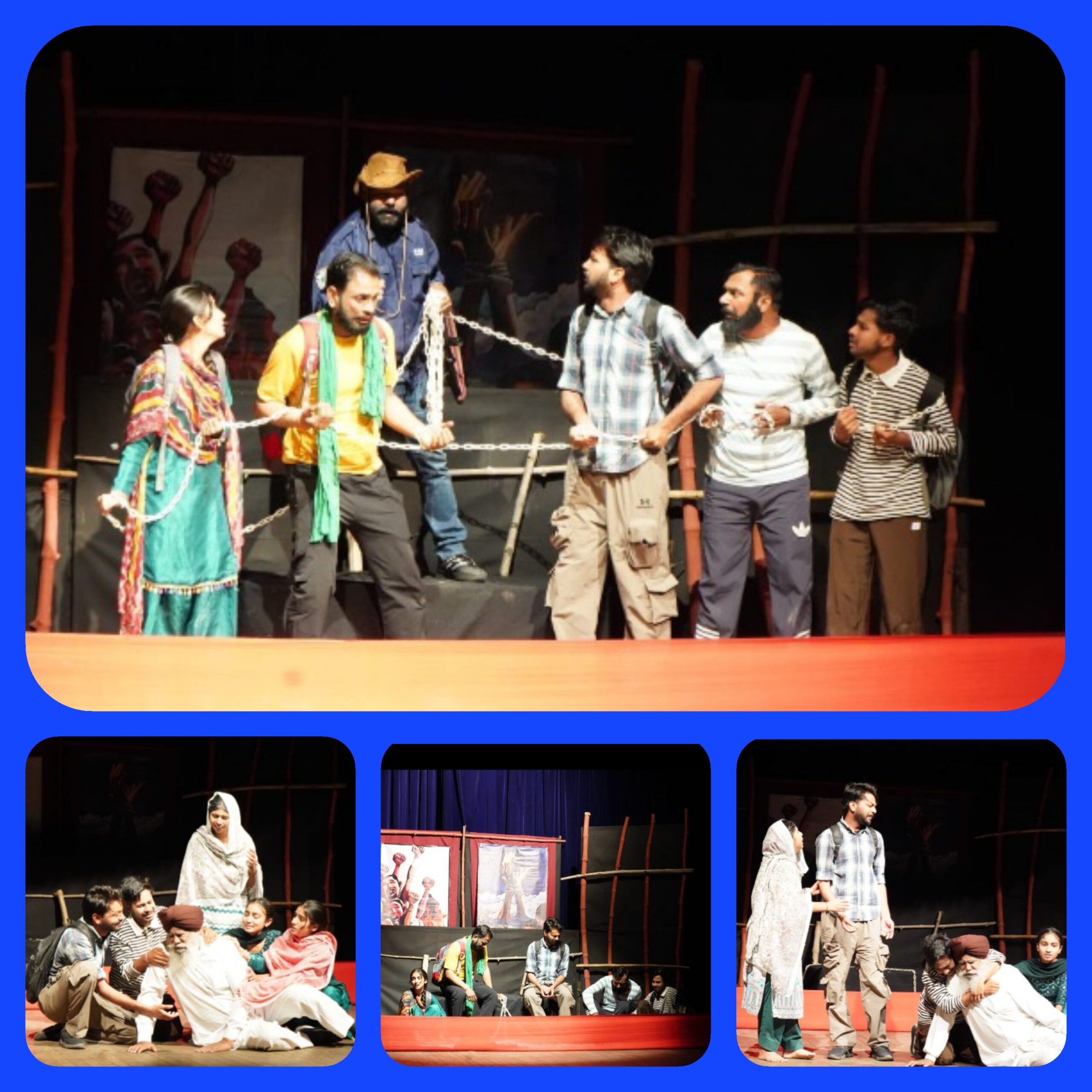 ਇਸ ਨਾਟਕ ਵਿੱਚ ਹਰਵਿੰਦਰ ਸਿੰਘ ਦੀ ਭੂਮਿਕਾ ਰਣਵੀਰ ਸਿੰਘ ਨੇ, ਬਾਪੂ ਗੁਰਮੇਲ ਸਿੰਘ ਦੀ ਭੂਮਿਕਾ ਭਾਗ ਸਿੰਘ, ਪ੍ਰਿਥਵੀ ਸਿੰਘ ਦੀ ਭੂਮਿਕਾ ਵਿੱਚ ਦੀਪਕ ਰਾਏ, ਸੁਖਜੀਤ ਸਿੰਘ ਦੀ ਭੂਮਿਕਾ ਵਿੱਚ ਕਮਲਜੀਤ ਮੋਹੀ, ਮੁਸਕਾਨ ਦੀ ਭੂਮਿਕਾ ਵਿੱਚ ਨੈਨਾ ਸ਼ਰਮਾਂ, ਛੋਟੀ ਬੱਚੀ ਜਸਦੀਪ ਦੀ ਭੂਮਿਕਾ ਵਿੱਚ ਕਿਰਨਦੀਪ ਕੌਰ, ਮਾਂ ਦੀ ਭੂਮਿਕਾ ਕਰਮਪ੍ਰੀਤ ਕੌਰ ਨੇ ਨਿਭਾਈ। ਇੱਕ ਡੰਕੀ ਨੌਜਵਾਨ ਦੀ ਭੂਮਿਕਾ ਵਿੱਚ ਲਖਵੀਰ ਸਿੰਘ, ਏਜੰਟ ਅਤੇ ਅਮਰੀਕਨ ਬਾਰਡਰ ਪੁਲੀਸ ਦੇ ਅਧਿਕਾਰੀ ਰੂਪ ਹਰਕੇਸ਼ ਚੌਧਰੀ ਨੇ ਭੂਮਿਕਾ ਨਿਭਾਈ। ਇਸੇ ਤਰ੍ਹਾਂ ਮਿਊਜ਼ਿਕ ਚਲਾਉਣ ਦੀ ਜ਼ਿੰਮੇਵਾਰੀ ਜਸਮੀਨ ਕੌਰ ਨੇ, ਮੇਕਅੱਪ ਦੀਪਕ ਰਾਏ ਜੀ ਅਤੇ ਲਈਟਿੰਗ ਤੇ ਏਕਮਪ੍ਰੀਤ ਸਿੰਘ ਖੂਬ ਨਿਭੇ। ਪ੍ਰਸਿੱਧ ਰੰਗਕਰਮੀ ਤੇ ਫਿਲਮ ਅਦਾਕਾਰ ਬਨਿੰਦਰਜੀਤ ਬਨੀ ਦੇ ਥਿਏਟਰ ਗਰੁੱਪ ਇੰਪੈਕਟ ਆਰਟਸ ਵੱਲੋਂ ਬਹੁਤ ਪ੍ਰਭਾਵਸ਼ਾਲੀ ਨੁੱਕੜ ਨਾਟਕ ਦੀ ਪੇਸ਼ਕਾਰੀ ਕੀਤੀ ਗਈ। ਇਸ ਮੌਕੇ ਦੀਪਕ ਬਾਲੀ ਜਨਰਲ ਸਕੱਤਰ, ਮੁੱਖ ਸਲਾਹਕਾਰ ਸੈਰ-ਸਪਾਟਾ ਤੇ ਸੱਭਿਆਚਾਰਕ ਵਿਭਾਗ ਪੰਜਾਬ ਨੇ ਵਿਸ਼ੇਸ਼ ਤੌਰ ਤੇ ਮੁੱਖ ਮਹਿਮਾਨ ਸਿਰਕਤ ਕੀਤੀ। ਦੀਪਕ ਬਾਲੀ ਨੇ ਕਿਹਾ ਕਿ ਇਸ ਰੰਗਮੰਚ ਉਤਸਵ ਦਾ ਮੁੱਖ ਮਨੋਰਥ ਰੰਗਮੰਚ ਕਲਾ ਨੂੰ ਪ੍ਰਫੁੱਲਤ ਕਰਨਾ ਹੈ। ਦਰਸ਼ਕਾਂ ਦਾ ਧੰਨਵਾਦ ਕਰਦਿਆਂ ਚੇਅਰਮੈਨ ਸਵਰਨਜੀਤ ਸਿੰਘ ਸਵੀ ਅਤੇ ਰੰਗਮੰਚ ਉਤਸਵ ਦੇ ਕਨਵੀਨਰ ਨਾਟਕਕਾਰ ਰਾਜਵਿੰਦਰ ਸਮਰਾਲਾ ਨੇ ਕਿਹਾ ਕਿ ਆਉਣ ਵਾਲੇ ਸਮੇਂ ਵਿੱਚ ਵੀ ਪੰਜਾਬ ਕਲਾ ਪਰਿਸ਼ਦ ਤੇ ਸੰਗੀਤ ਨਾਟਕ ਅਕੈਡਮੀ ਵੱਲੋਂ ਇਸ ਤਰ੍ਹਾਂ ਦੇ ਹੋਰ ਵੀ ਰੰਗਮੰਚ ਉਤਸਵ ਕਰਵਾਏ ਜਾਣਗੇ। ਇਸ ਮੌਕੇ ਸੰਗੀਤ ਨਾਟਕ ਅਕੈਡਮੀ ਦੇ ਪ੍ਰਧਾਨ ਅਸ਼ਵਨੀ ਚੈਟਲੇ, ਸੱਕਤਰ ਨਿਰਮਲ ਜੌੜਾ ਨੇ ਪੇਸ਼ਕਾਰੀ ਦੀ ਸ਼ਲਾਘਾ ਕੀਤੀ।