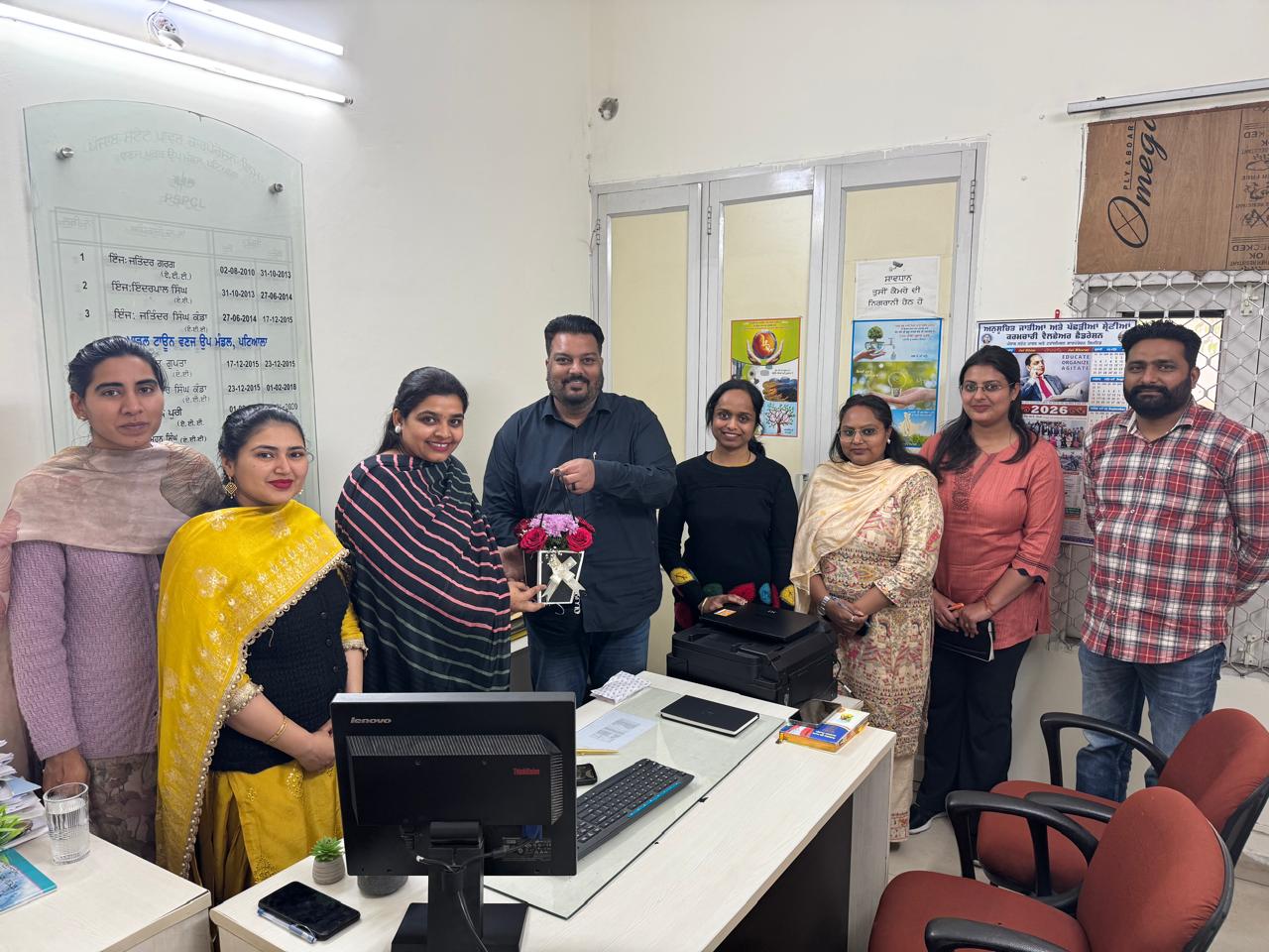 Under the distribution South zone of Punjab State Power Corporation Limited, the Model Town Sub-Division at Patiala stands out as a model administrative unit distinguished by its strong representation of women officers and employees. With unwavering dedication, professional integrity, and resolute commitment, these women professionals are diligently serving thousands of electricity consumers. The Sub-Division is not only recognized for its operational efficiency but has also emerged as a proud symbol of women empowerment within the PSPCL framework. Today, Er. Sukhchain Kaur formally assumed charge as Sub-Divisional Officer (SDO) at the Model Town Sub-Division. On the occasion, Senior Executive Engineer Er. Abhiraj Singh Randhawa, along with the entire staff, extended a warm welcome and conveyed their best wishes for her successful tenure.
