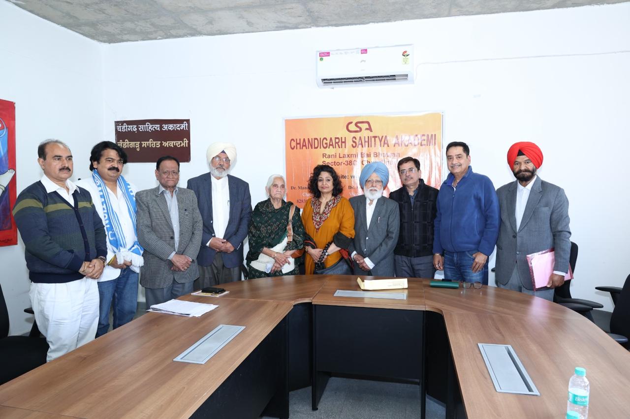 First of all flowers presented on photo of Mohan Bhandari. Nirmal Bhandari also shared her journey with the Writer. Dr. Manmohan Singh Chairman CSA introduced the guests and gave a brief note of the activities of the Academy. Sh. Rajiv Bhandari and Rahul Bhandari sons of Mohan Bhandari also shared their memories with Bhandari and recited a poem written by Sanjiv Bhandari. Sh. Balijit, Goverdham Gabbi, Gul Chohan, Raj Kumar, Bhupinder Malik, Advocate Manjinder Sandhu also shared their views about Mohan Bhandari. Rekha Mittal, Lalita Puri, Manjit Kaur, Harbans Kaur Gill, Surjit Suman, Gurmit Singal we’re also present on the occasion. Program ended with a vote of thanks by Dr. Anish Garg Vice Chairman CSA.